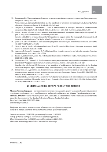 5. Nieto A. Can subsidies to permanent employment change fertility decisions? Labour Economics. 2022;78:102219. DOI: 10.1016/j.labeco.2022.102219 EDN: WNMBCW