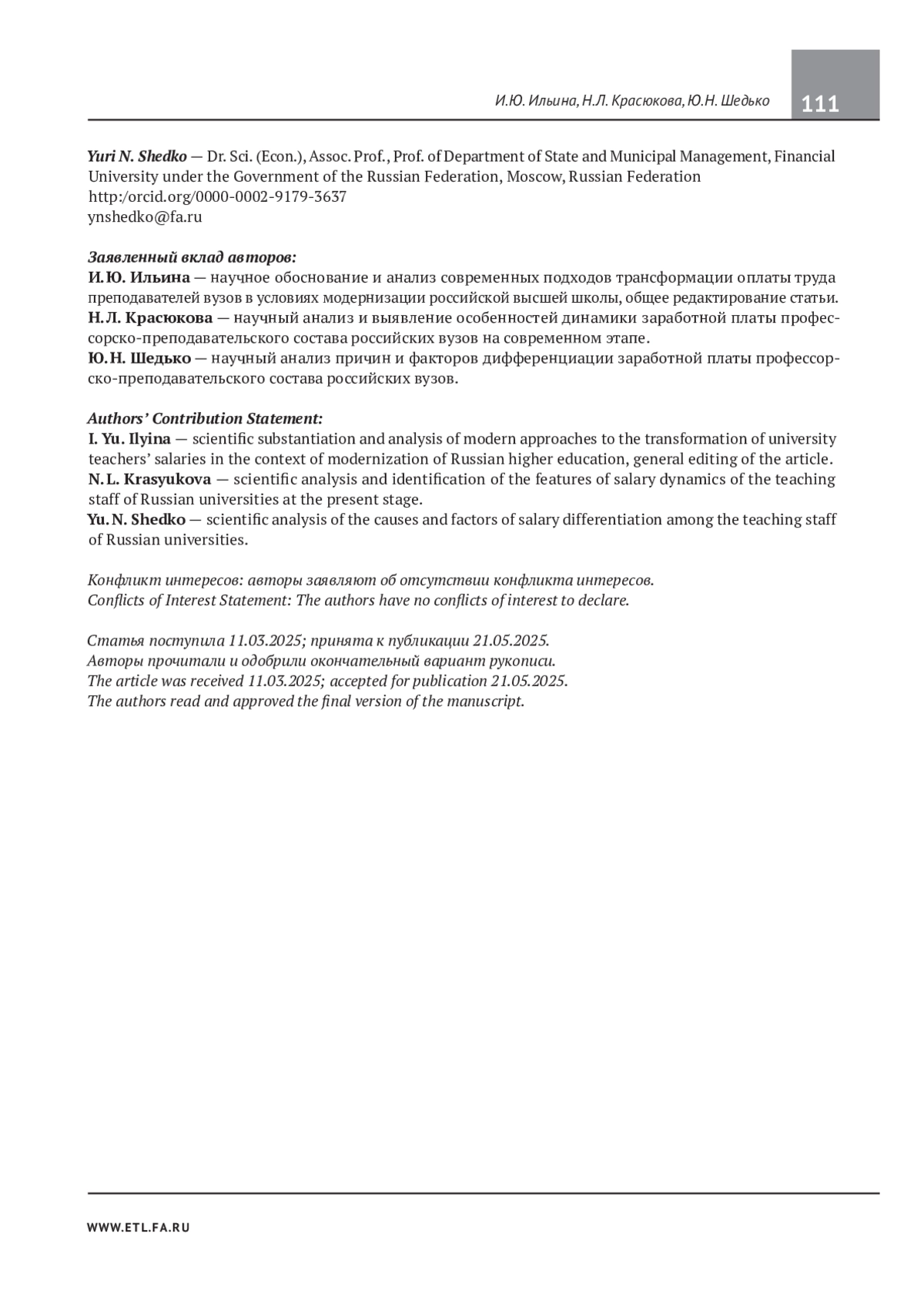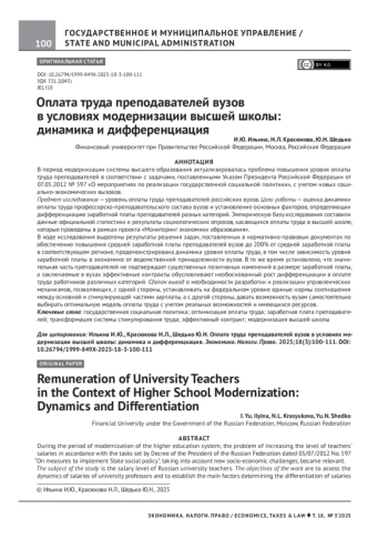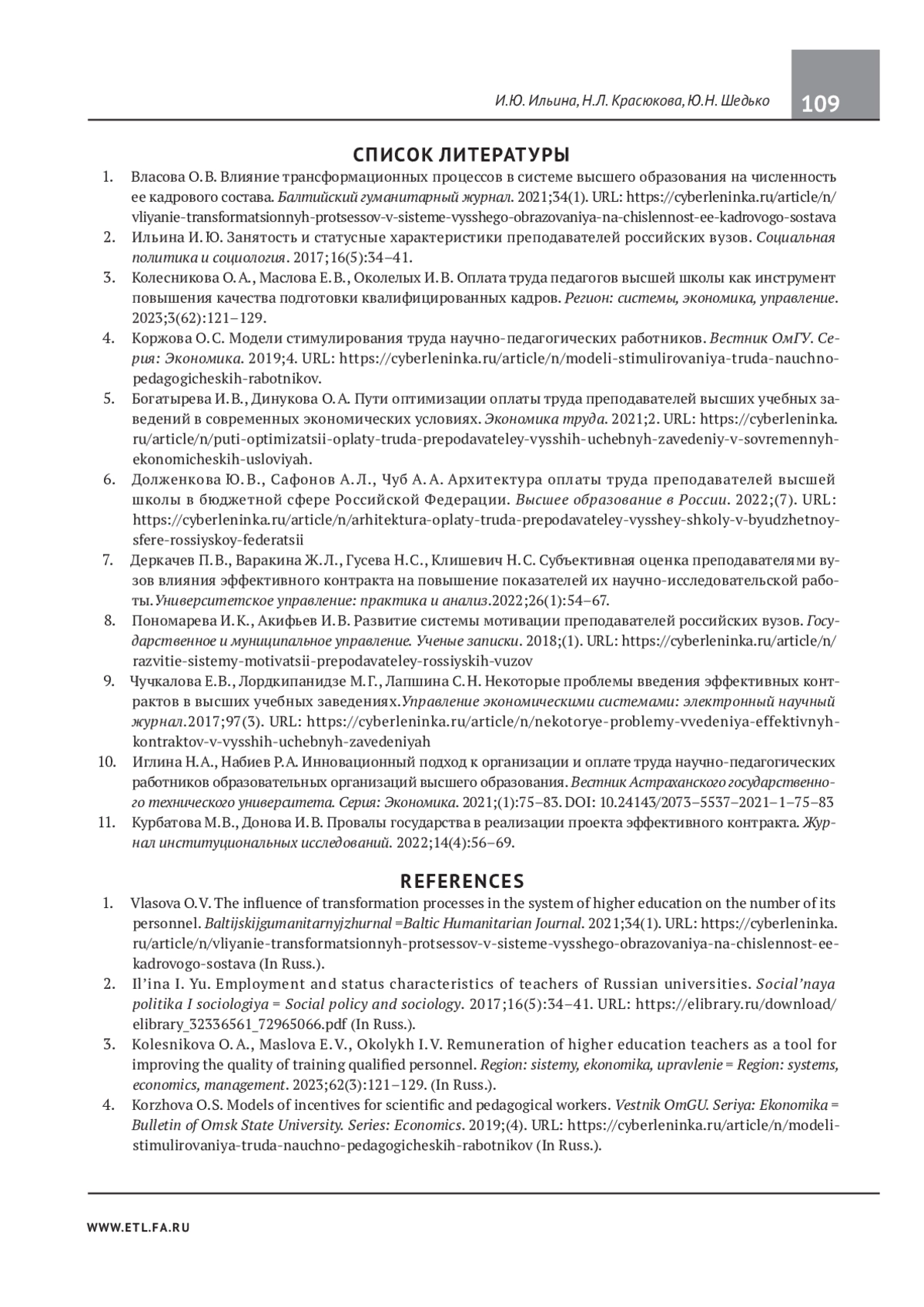 2. Ильина И. Ю. Занятость и статусные характеристики преподавателей российских вузов. Социальная политика и социология. 2017;16(5):34-41. EDN: YMWIIY