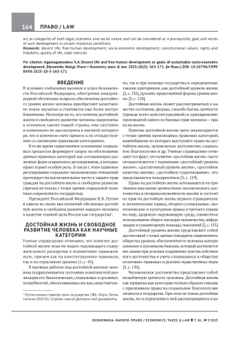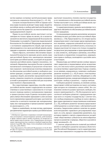 В условиях глобальных вызовов и угроз безопасности Российской Федерации, обострения международной обстановки вопросы обеспечения достойного уровня жизни человека приобретают качественно новое звучание и становятся еще более востребованными. Несмотря на то, что понятия достойной жизни и свободного развития человека закреплены в основном законе нашей страны, они системно и комплексно не рассмотрены в научной литературе, что в конечном счете привело к их отождествлению со смежными правовыми категориями