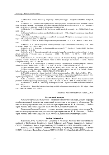 21. Огольцева Е. В. Синонимия устойчивых сравнений с интегральным признаком “полный, толстый” (о комплекции человека) // Русский язык за рубежом. - 2024. - № 2(303). - С. 64-73. DOI: 10.37632/PI.2024.303.2.011 EDN: KVQBIB
