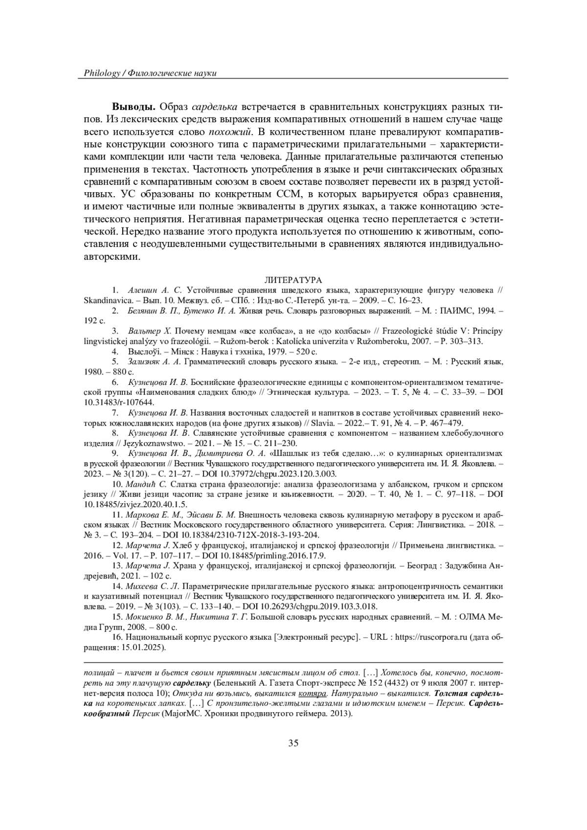 7. Кузнецова И. В. Названия восточных сладостей и напитков в составе устойчивых сравнений некоторых южнославянских народов (на фоне других языков) // Slavia. - 2022.- Т. 91, № 4. - P. 467-479. EDN: VSELRS