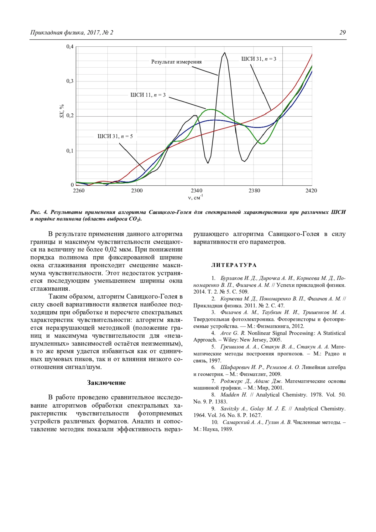 9. Savitzky A., Golay M. J. E. // Analytical Chemistry. 1964. Vol. 36. No. 8. P. 1627.