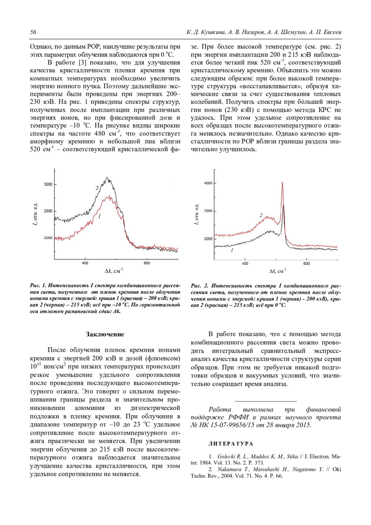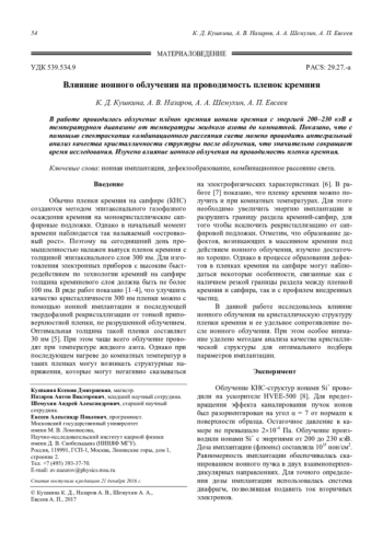Кушкина К. Д., Назаров А. В., Шемухин А. А., Евсеев А. П. Влияние ионного облучения на проводимость пленок кремния 54