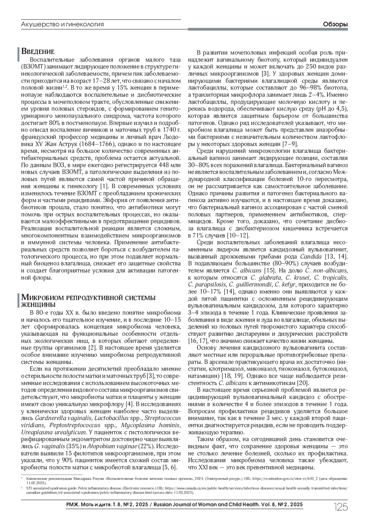 10. Казанцева В.Д., Озолиня Л.А., Савченко Т.Н., Доброхотова Ю.Э. Современные стратегии лечения и профилактики бактериального вагиноза. РМЖ, Мать и дитя, 2025;8(1):27-31. DOI: 10.32364/2618-8430-2025-8-1-4