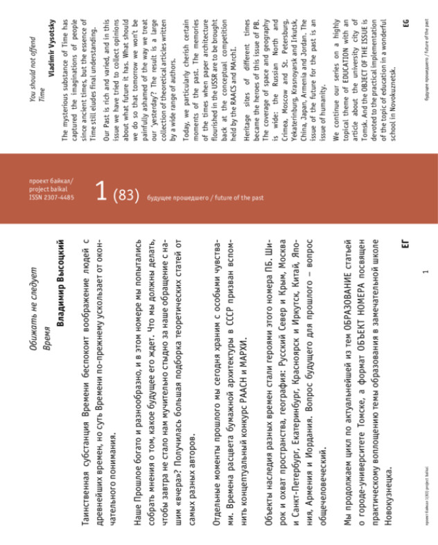 Наше Прошлое богато и разнообразно, и в этом номере мы попытались собрать мнения о том, какое будущее его ждет. Что мы должны делать, чтобы завтра не стало нам мучительно стыдно за наше обращение с нашим «вчера»? Получилась большая подборка теоретических статей от самых разных авторов.