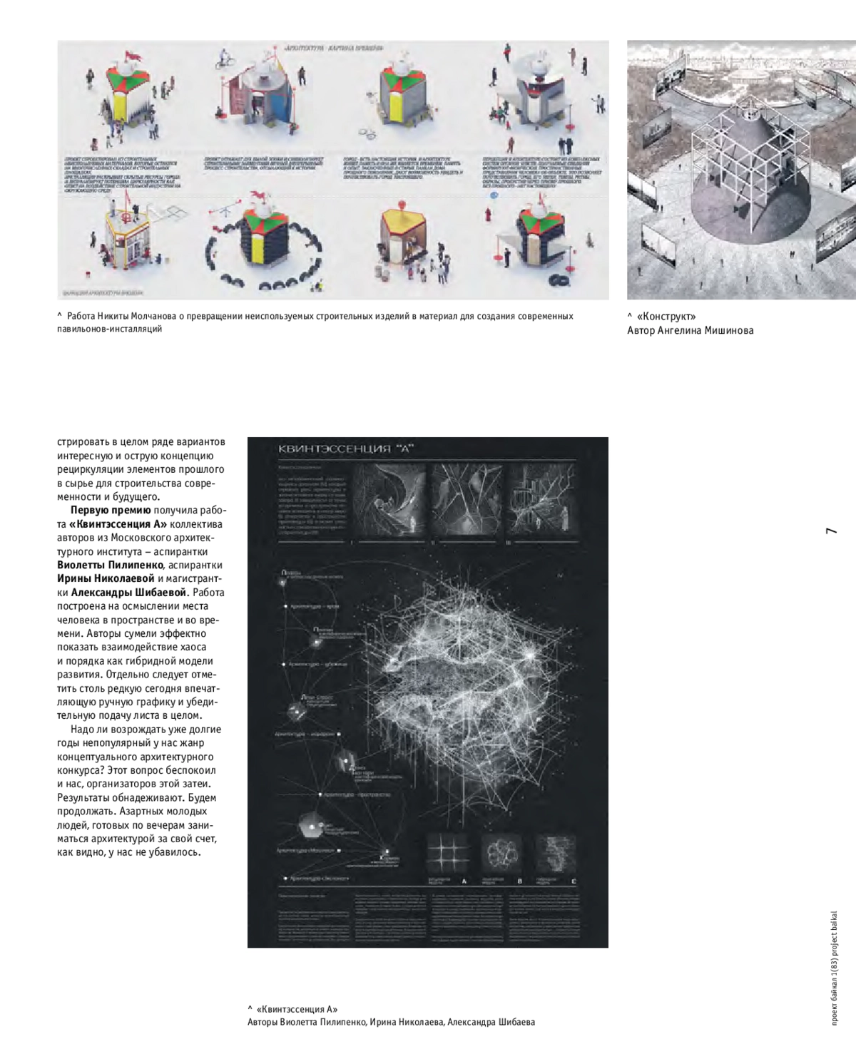 Описывается феномен концептуальных архитектурных конкурсов, их организаторы, программа, история. Свободный, креативный характер конкурса позволяет привлечь большое количество участников разного уровня квалификации. Характеризуются победители конкурса.
