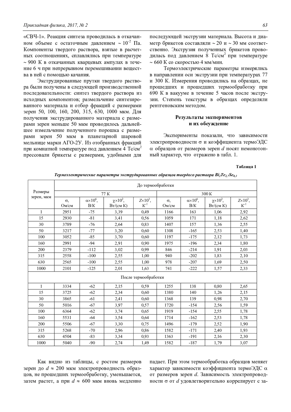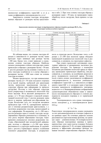 Бархалов Б. Ш., Тагиев М. М., Багиева Г. З., Алиев Р. Ю., Абдинова Г. Д., Алиева Т. Д., Ахундова Н. М., Магеррамова К. И. Термоэлектрические свойства экструдированных образцов твердого раствора Bi2Te2,7Se0,3 с различными размерами зерен 62