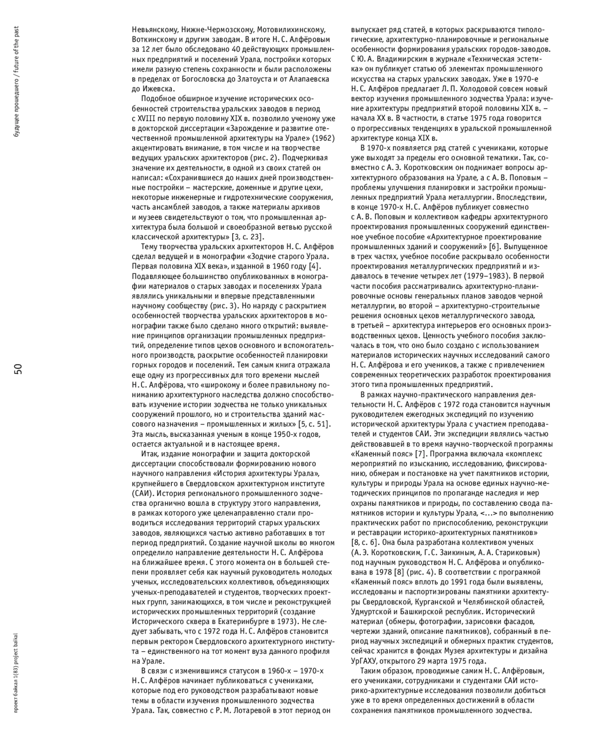 3. Алфёров, Н. С. Архитектура промышленных сооружений Урала XVIII - первой половины XIX века // Архитектура СССР. - 1952. - № 12. - С. 23-25.