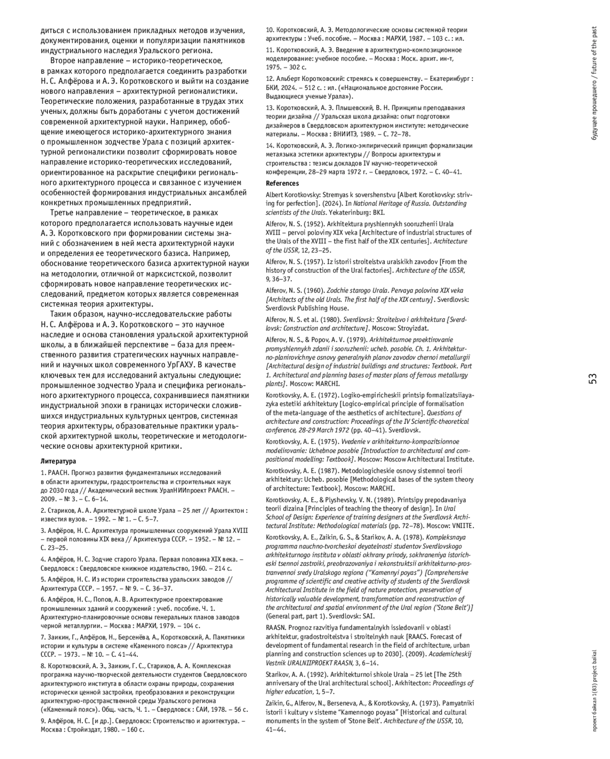 2. Стариков, А. А. Архитектурной школе Урала - 25 лет // Архитектон: известия вузов. - 1992. - № 1. - С. 5-7.