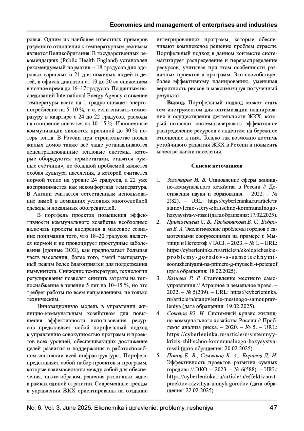 4. Соколов Ю. И. Системный кризис жилищно-коммунального хозяйства России // Проблемы анализа риска. - 2020. - № 5. - URL: https://cyberleninka.ru/article/n/sistemnyykrizis-zhilischno-kommunalnogo-hozyaystvarossii (дата обращения: 20.02.2025).