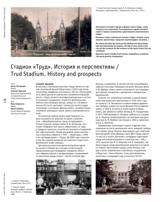Более века спортивный комплекс «Труд» является главной спортивной ареной Приангарья: в 2023 году этому почтенному заведению исполнилось 100 лет. Расположен он в самом центре исторического поселения «Город Иркутск». «Труд» является многофункциональным и состоит из основных сооружений: открытого футбольно-хоккейного поля (большая арена); трибун на 17,8 (максимально 25) тысяч зрителей с залами для разных видов спортивных состязаний; Дворца спорта с универсальным спортивно-зрелищным залом; малого (тренировочного) поля.