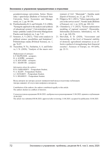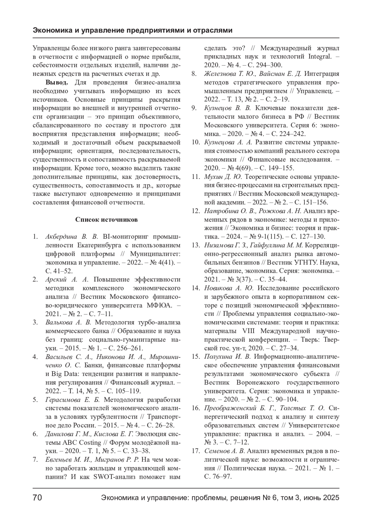 15. Полухина И. В. Информационно-аналитическое обеспечение управления финансовыми результатами экономического субъекта // Вестник Воронежского государственного университета. Серия: экономика и управление. - 2020. - № 2. - С. 90-104. EDN: YAERIY