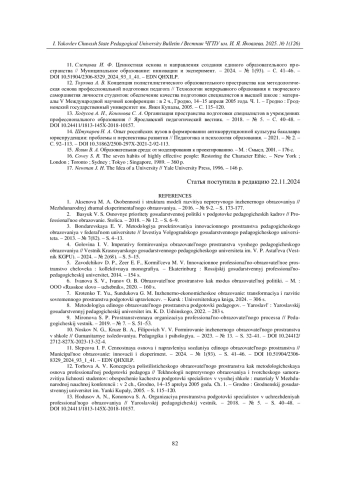 11. Слепцова И. Ф.Ценностная основа и направления создания единого образовательного пространства // Муниципальное образование: инновации и эксперимент. - 2024. - № 1(93). - С. 41-46. DOI: 10.51904/2306-8329_2024_93_1_41 EDN: QHXILP