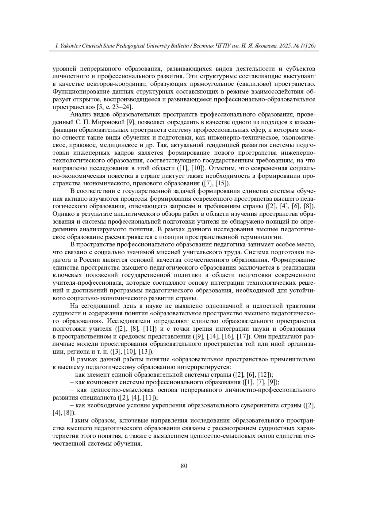 13. Ходусов А. Н., Кононова С. А. Организация пространства подготовки специалистов в учреждениях профессионального образования // Ярославский педагогический вестник. - 2018. - № 5. - С. 40-48. DOI: 10.24411/1813-145X-2018-10157 EDN: YOQECL