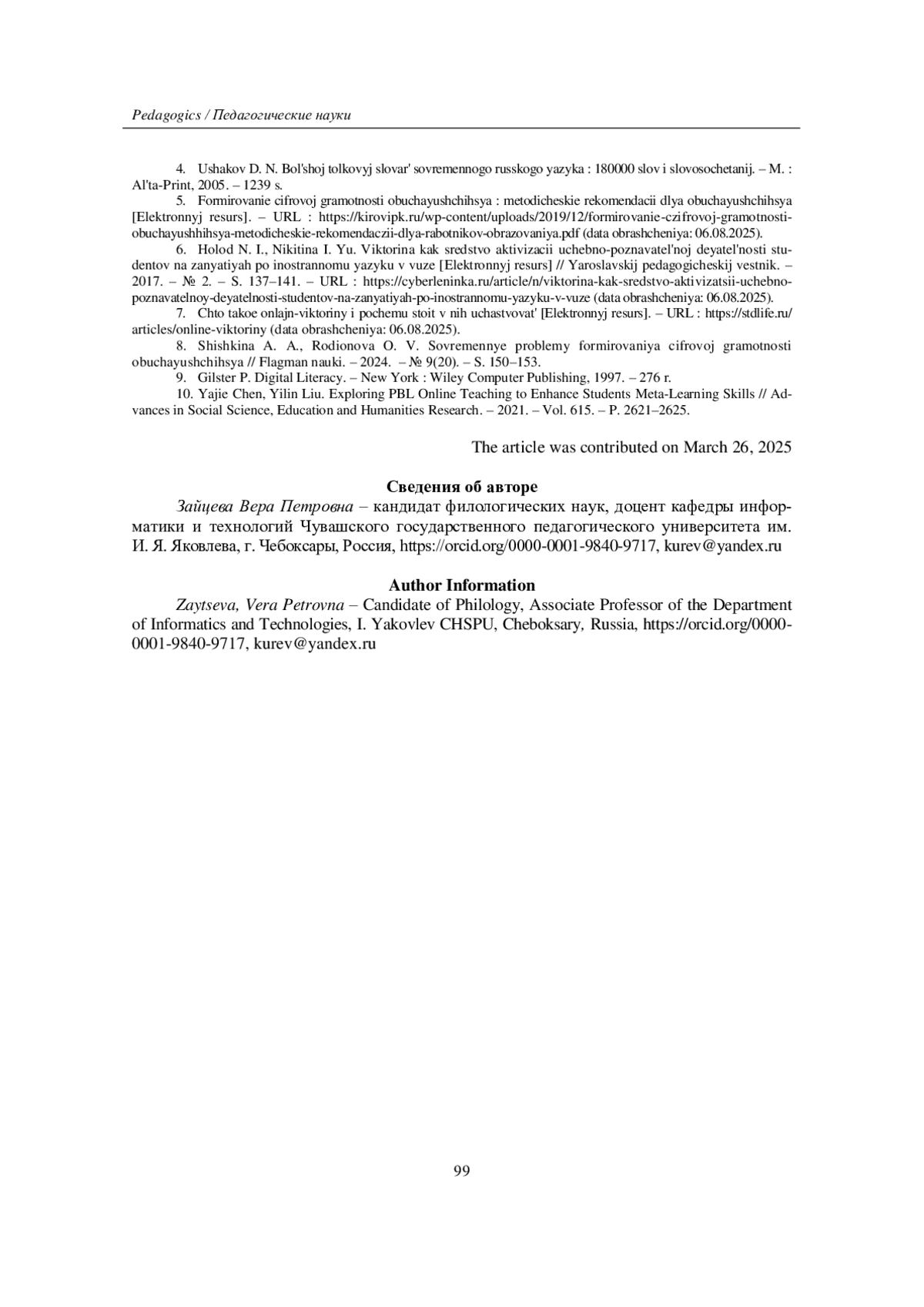5. Формирование цифровой грамотности обучающихся: методические рекомендации для обучающихся [Электронный ресурс]. - URL: https://kirovipk.ru/wp-content/uploads/2019/12/formirovanie-czifrovoj-gramotnosti-obuchayushhihsya-metodicheskie-rekomendaczii-dlya-rabotnikov-obrazovaniya.pdf(дата обращения: 06.08.2025).