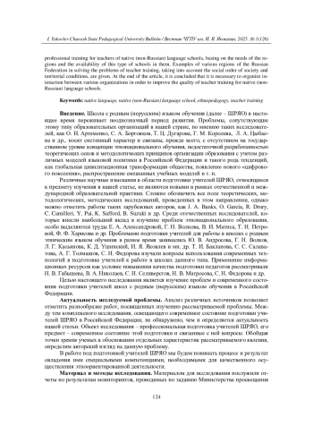 Школа с родным (нерусским) языком обучения (далее – ШРЯО) в настоящее время переживает неоднозначный период развития. Проблемы, сопутствующие этому типу образовательных организаций в нашей стране, по мнению таких исследователей, как О. И. Артеменко, С. А. Боргояков, Т. Ц. Дугарова, Г. М. Королева, Л. А. Цыбаева и др., носят системный характер и связаны, прежде всего, с отсутствием на государственном уровне концепции этнонационального обучения, недостаточной разработанностью теоретических основ и методологических принципов организации образования с учетом различных моделей языковой политики в Российской Федерации и такого рода тенденций, как глобальная цивилизационная трансформация общества, появление нового «цифрового поколения», распространение смешанных учебных моделей и т. п.