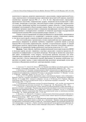 9. Мирошниченко В. В. Полилингвальный и этнорегиональный подходы как методологическое основание подготовки учителей школ с родным (нерусским) языком обучения // Современные тенденции развития этнопедагогики в образовательном пространстве мира: сборник научно-методических статей по итогам Международной научно-практической конференции, посвященной 95-летию со дня рождения академика РАО Г. Н. Волкова / отв. ред. С. Л. Михеева, О. А. Димитриева. - Чебоксары: Чуваш. гос. пед. ун-т, 2022. - С. 218-222. EDN: PZKLRG