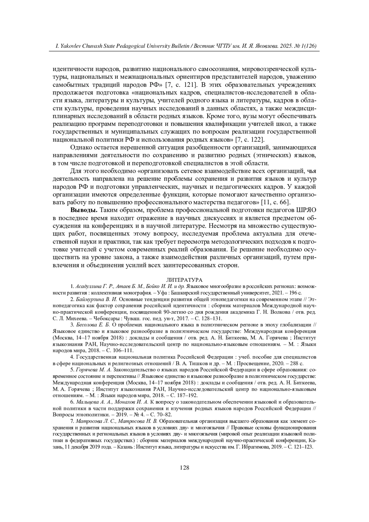 В заключение делается вывод о необходимости организации взаимодействия различных организаций с целью повышения качества подготовки учителей с родным (нерусским) языком обучения.
