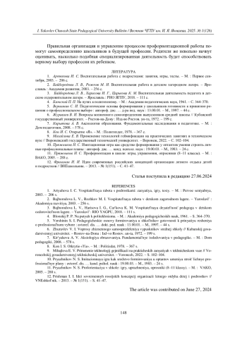 11. Пряжников Н. С. Профориентация в школе: игры, упражнения, опросники (8-11 классы). - М.: ВАКО, 2005. - 288 с. EDN: QUUCDD