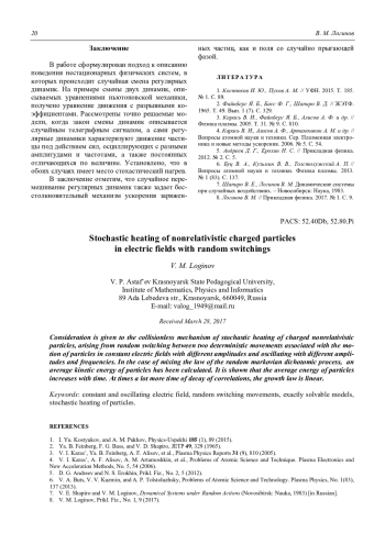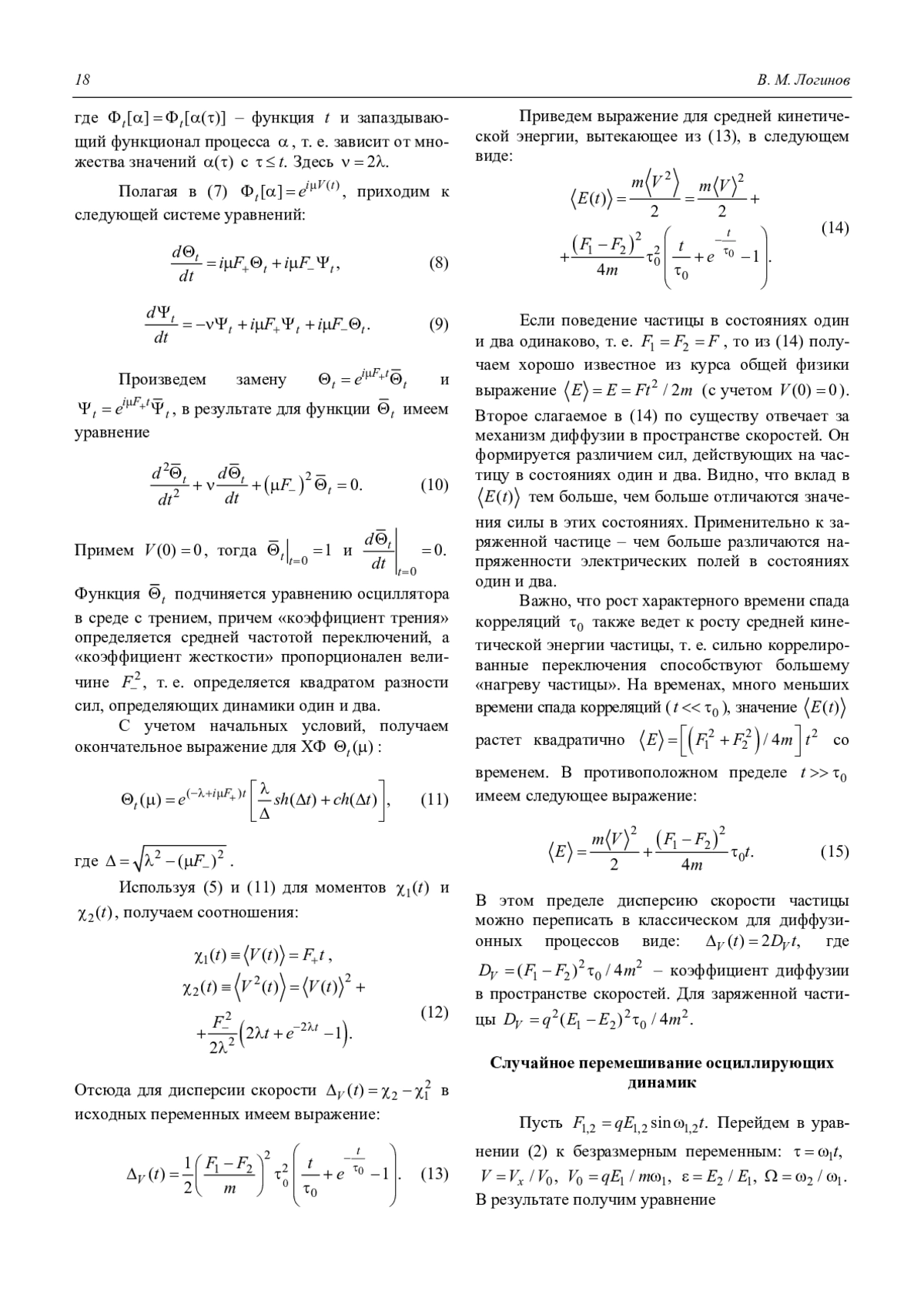 Логинов В. М. Стохастический нагрев нерелятивистских заряженных частиц в электрических полях со случайными переключениями 16