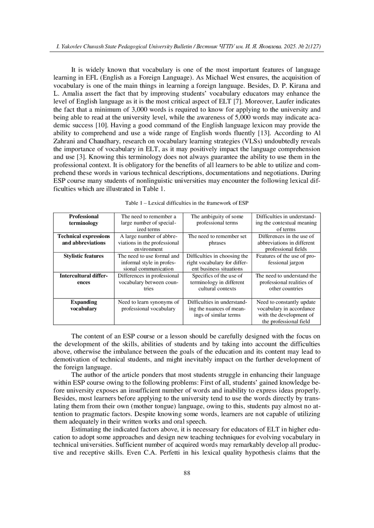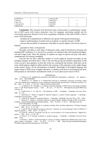 3. Al Zahrani S. M., Chaudhary A. Vocabulary Learning Strategies in ESP Context: Knowledge and Implication // Arab World English Journal. - 2022. - № 13(1). - P. 382-393. DOI: 10.24093/awej/vol13no1.25 EDN: GSUVBN