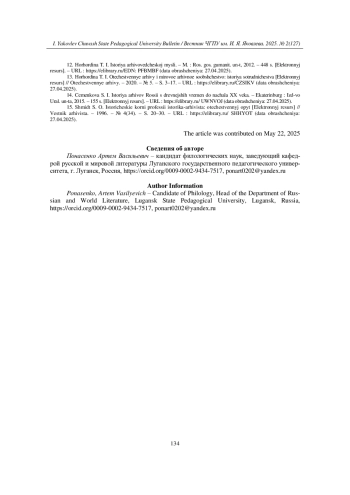 8. Ткаченко В. Г. Эволюция взглядов на периодизацию истории архивов и архивного дела в отечественном архивоведении [Электронный ресурс] // История Чувашии через призму комплексного подхода: от междисциплинарности к трансдисциплинарности. - Чебоксары: Чувашский государственный университет имени И. Н. Ульянова, 2024. - С. 309-325. - URL: (дата обращения: 27.04.2025). EDN: GQPZGF