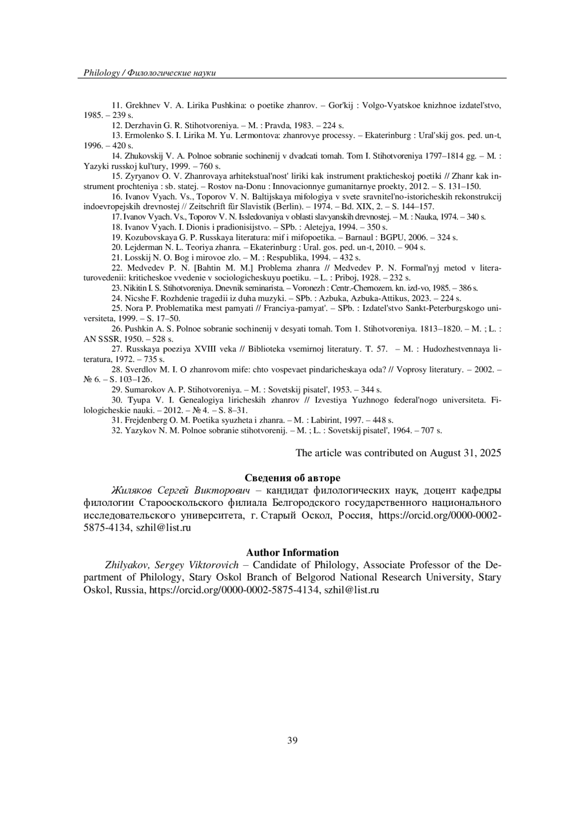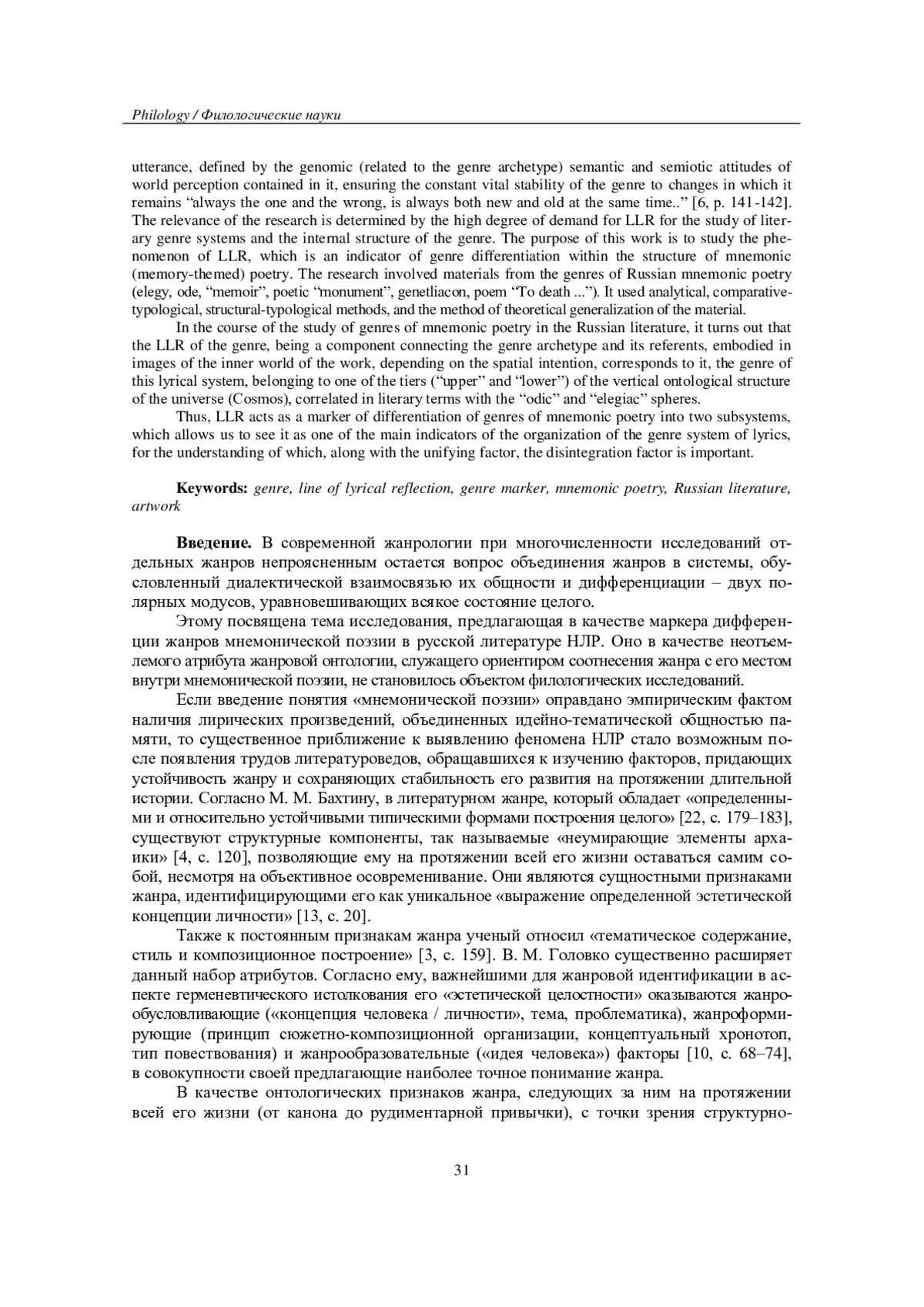 30. Тюпа В. И. Генеалогия лирических жанров // Известия Южного федерального университета. Филологические науки. - 2012. - № 4. - С. 8-31. EDN: REWTGV