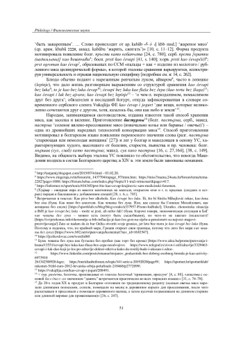 11. Кузнецова И. В. Названия восточных сладостей и напитков в составе устойчивых сравнений некоторых южнославянских народов (на фоне других языков) // Slavia. - 2022. - Т. 91, № 4. - P. 467-479. EDN: VSELRS