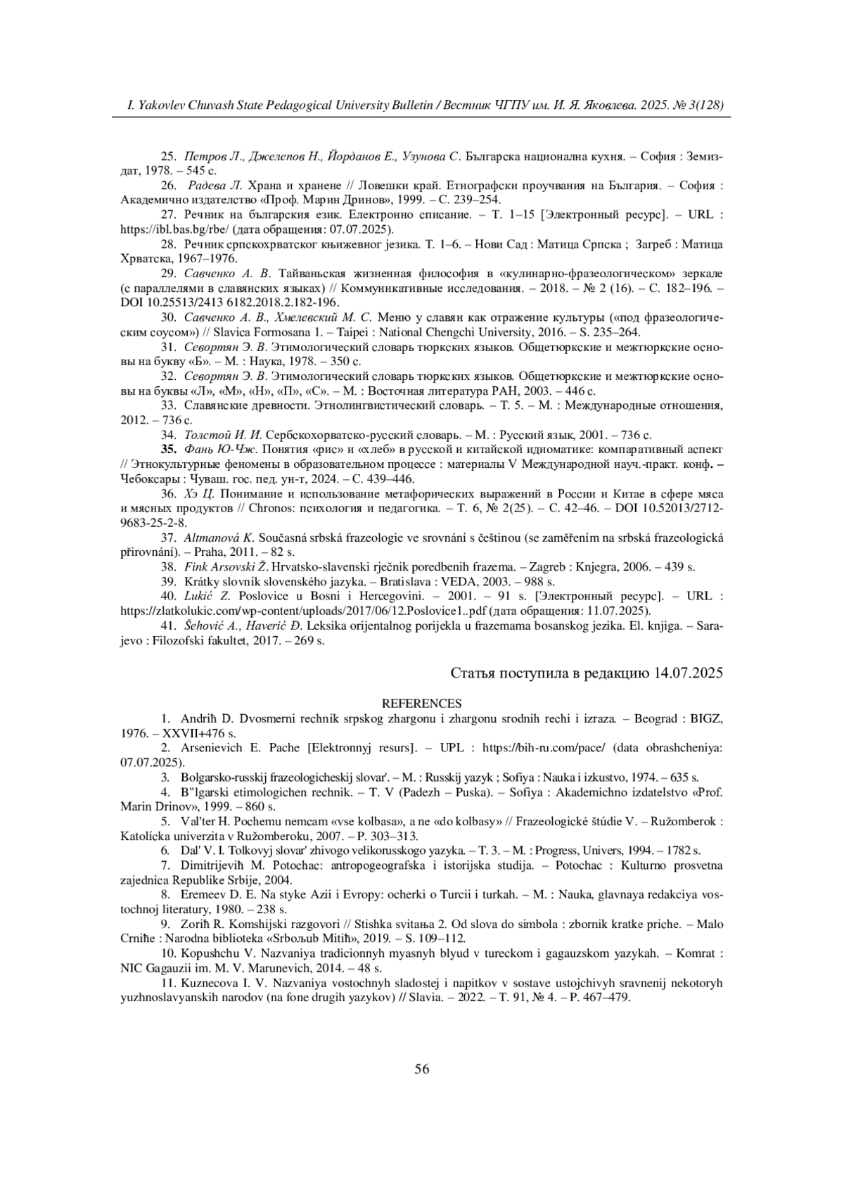 12. Кузнецова И. В. Турцизмы - названия молочных продуктов и блюд в фразеологии южных славян // Вестник Чувашского государственного педагогического университета им. И. Я. Яковлева. - 2024. - № 1(122). -С. 56-63. DOI: 10.37972/chgpu.2024.122.1.007 EDN: MPBNTG
