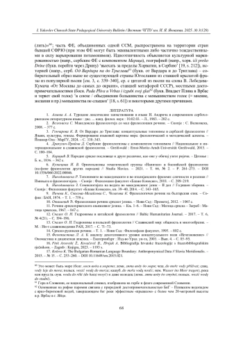 3. Гончарова К. В. От Вардара до Триглава: концептуальные топонимы в сербской фразеологии // Языки, культуры, этносы. Формирование языковой картины мира: филологический и методический аспекты. - Йошкар-Ола: МарГУ, 2024. - С. 338-343.