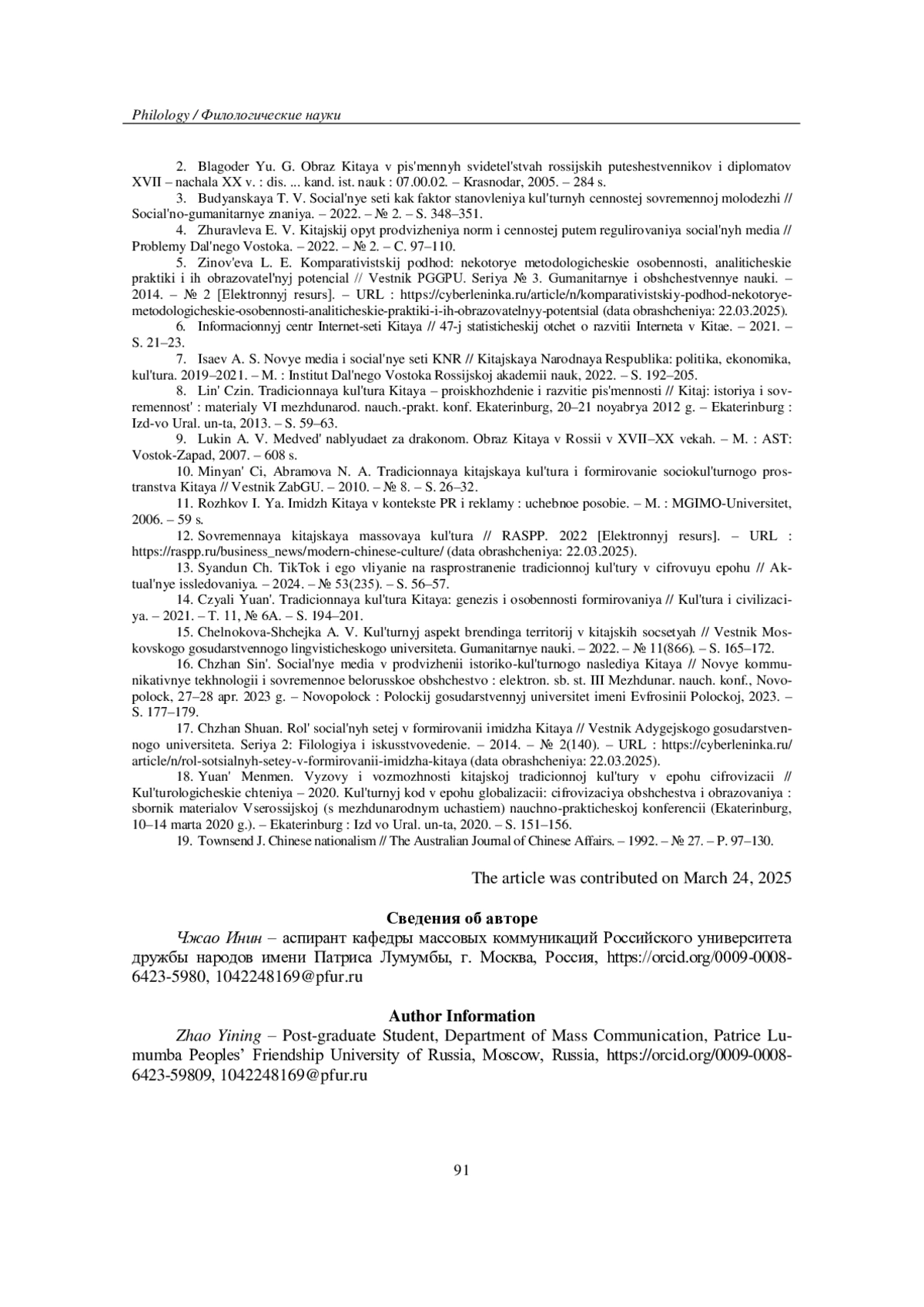 13. Сяндун Ч. TikTok и его влияние на распространение традиционной культуры в цифровую эпоху // Актуальные исследования. - 2024. - № 53(235). - С. 56-57. EDN: NVGAPO
