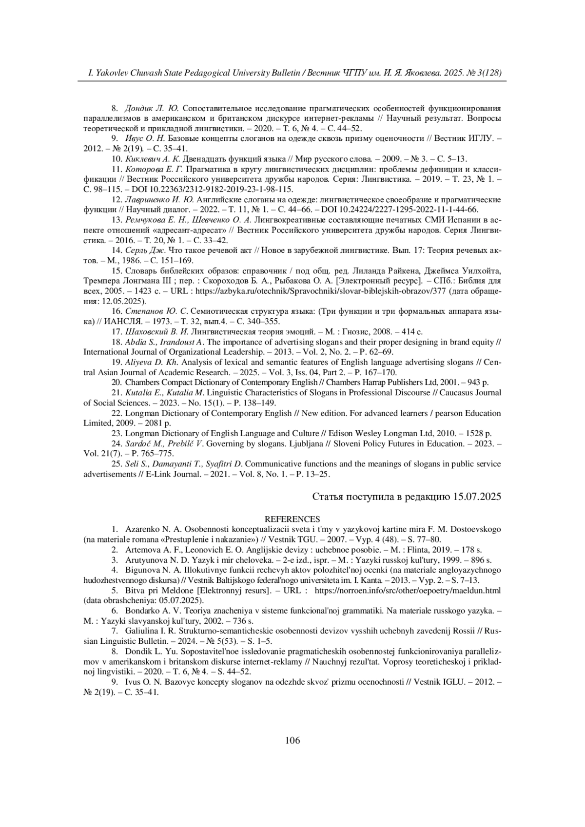 25. Seli S., Damayanti T., Syafitri D. Communicative functions and the meanings of slogans in public service advertisements // E-Link Journal. - 2021. - Vol. 8, No. 1. - P. 13-25. EDN: DLBDZJ