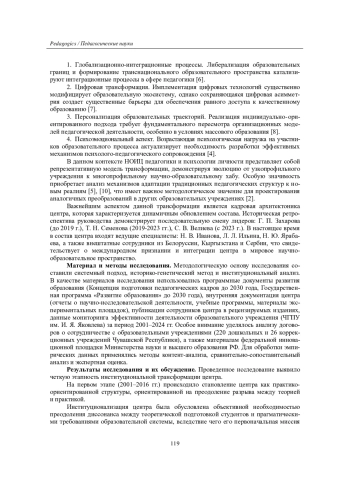Современная система высшего педагогического образования претерпевает фундаментальные трансформации, обусловленные глобальными парадигмальными сдвигами в образовательной политике и социально-экономическом ландшафте [5], [6]. Эти изменения, включая цифровизацию, переход к инклюзивным моделям обучения и необходимость реализации принципов непрерывного образования, требуют переосмысления традиционных организационных структур и подходов к научно-образовательной деятельности [1], [10], [8].