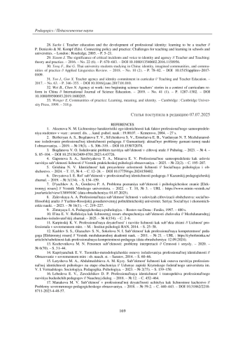 27. Rushton E., Gibbons S., Brock R., Cao Y., Finesilver C., Jones J., Manning A., Marshall B., Richardson C., Steaman S., Yeon S., E. Towers. Collaborative identity development during a global pandemic: exploring teacher identity through the experiences of pre-service high-school teachers in England // European Journal of Teacher Education. - 2023. - No. 5(17). - P. 18-37. DOI: 10.1080/02619768.2023.2175663