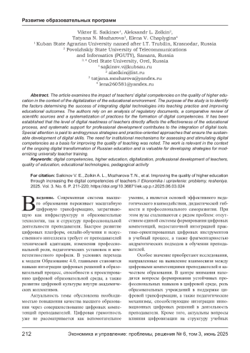 В статье рассматривается влияние цифровых компетенций преподавателей на качество высшего образования в условиях цифровизации образовательной среды.