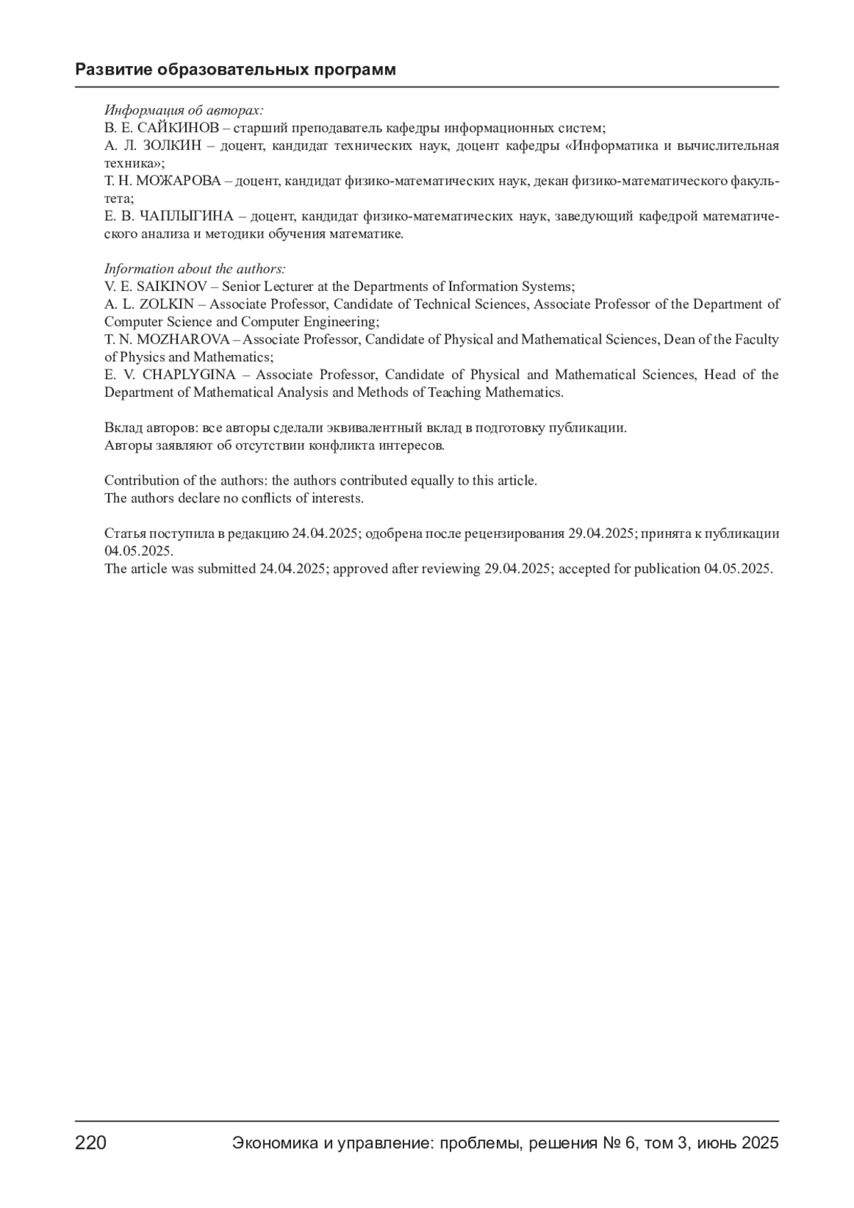 10. Сидоренко И. О. Социологические компетенции преподавателей вузов как проблема современного высшего образования // Труды молодых ученых Алтайского государственного университета. - 2024. - № 21. - С. 184-188. EDN: KTOLAT