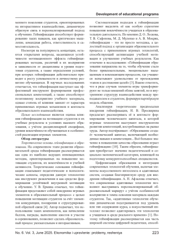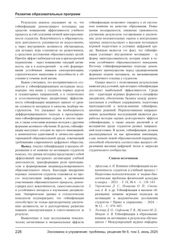 2. Укроженко Д. С., Неверова О. П., Степанов А. В. и др. Геймификация в высшем образовании: влияние игровых подходов на мотивацию и академические достижения студентов // Право и управление. - 2024. - № 12. - С. 479-483.