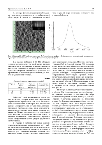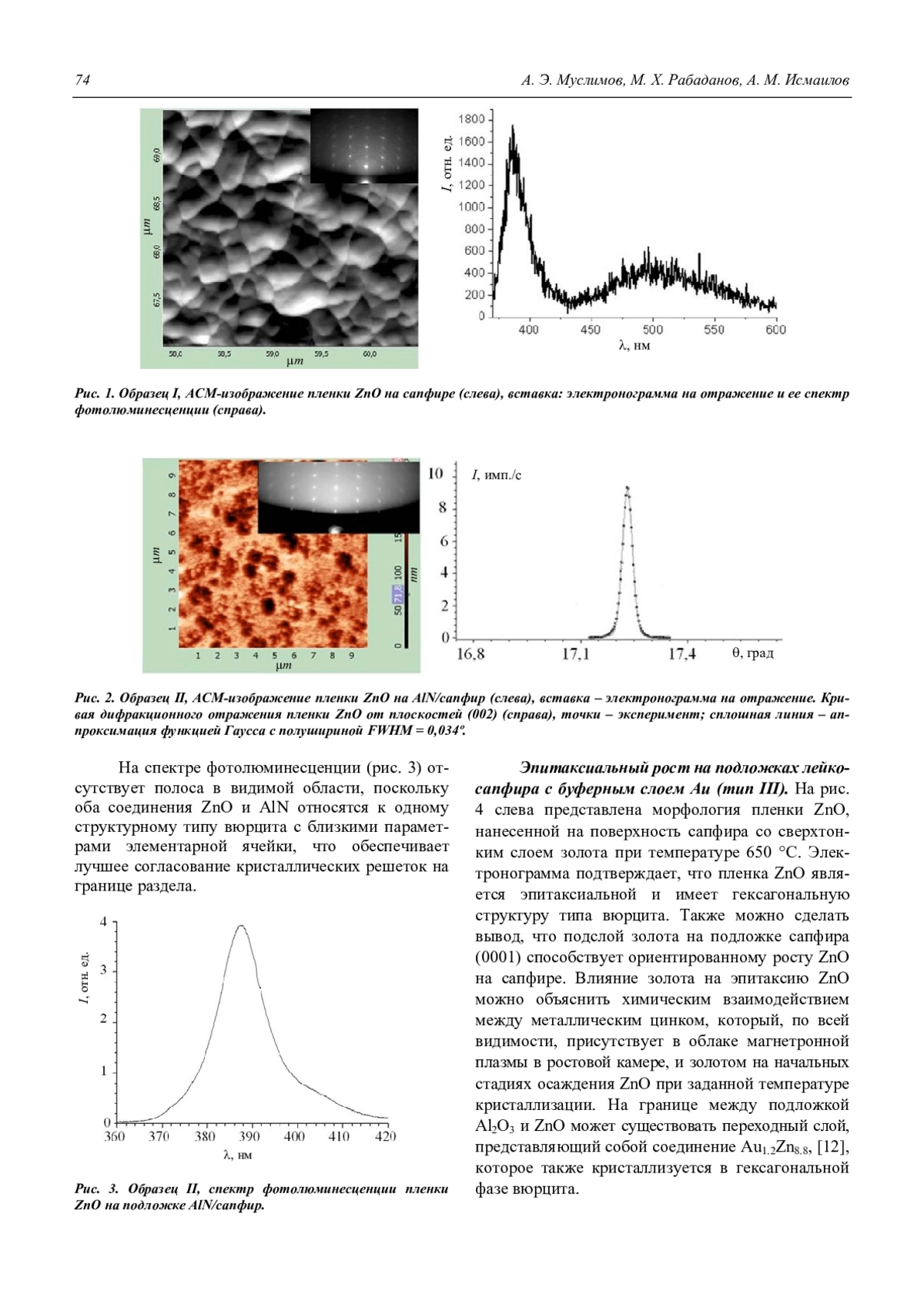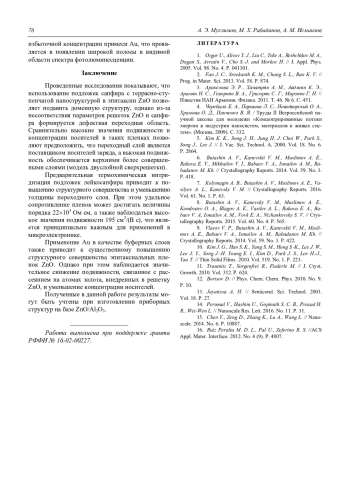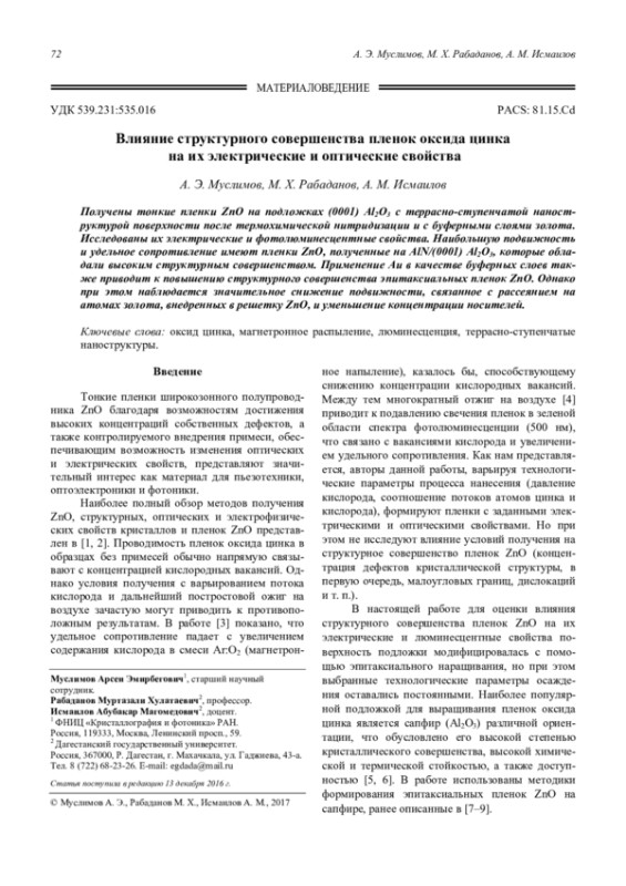 Муслимов А. Э., Рабаданов М. Х., Исмаилов А. М. Влияние структурного совершенства пленок оксида цинка на их электрические и оптические свойства 72
