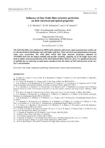 A. E. Muslimov, M. Kh. Rabadanov, and A. M. Ismailov Influence of Zinc Oxide films structure perfection on their electrical and optical properties 72