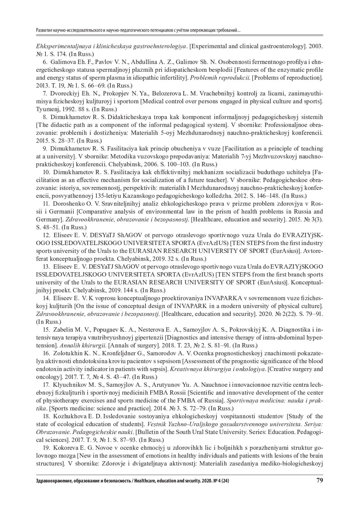 14. Елисеев, Е. В. К вопросу концептуального проектирования ИНВАПАРКА в современном вузе физической культуры / Е. В. Елисеев // Здравоохранение, образование и безопасность. - 2020. - № 2(22). - С. 79-91.