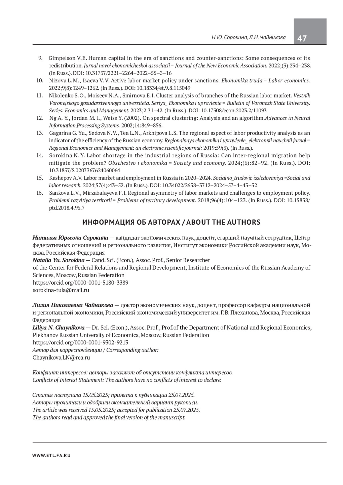 13. Гагарина Г.Ю., Седова Н.В., Чайникова Л.Н., Архипова Л.С.Региональный аспект анализа производительности труда как показателя эффективности экономики России. Региональная экономика и управление: электронный научный журнал:2019;59(3). EDN: YTIIIB