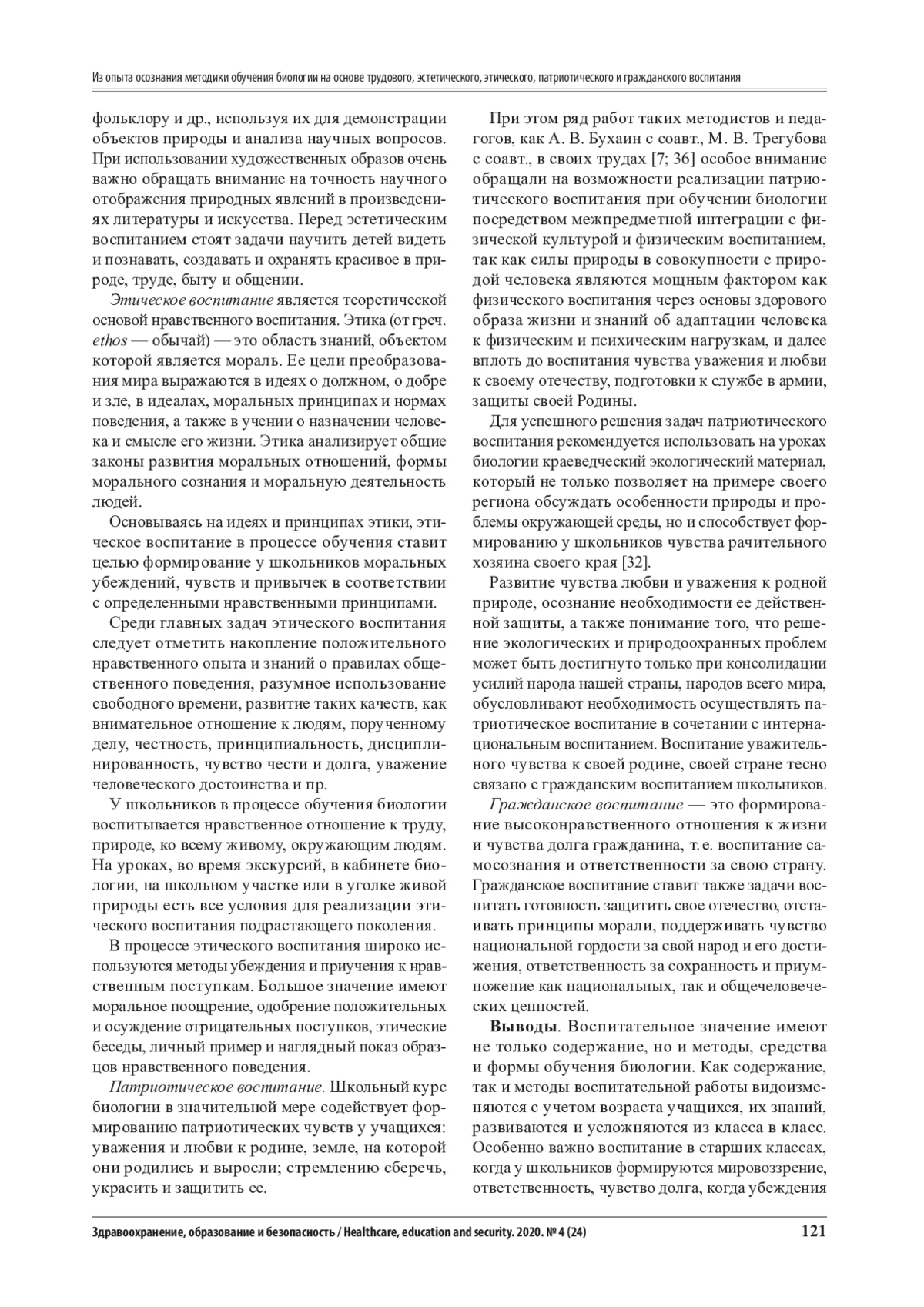 2. Алфёров, С. Н. Манифестация элементов и стороны воспитания учащихся при обучении биологии / С. Н. Алфёров // Здравоохранение, образование и безопасность. - 2020. - № 2(22). - С. 69-78.