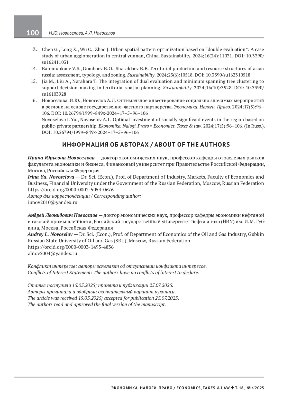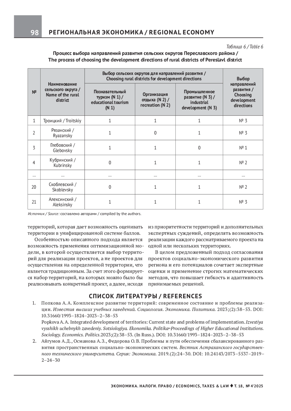 1. Попкова А.А. Комплексное развитие территорий: современное состояние и проблемы реализации. Известия высших учебных заведений. Социология. Экономика. Политика. 2023;(2):38-53. DOI: 10.31660/1993-1824-2023-2-38-53 EDN: AVWSDT