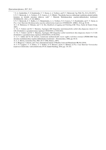 7. Гамкрелидзе С. А., Кондратенко В. С., Стыран В. В., Трофимов А. А., Щаврук Н. В. // Успехи прикладной физики. 2017. Т. 5. № 1. С. 80.