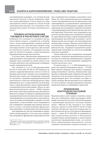 4. Гончаренко Л.И., Адвокатова А.С., Батарин А.А. Идентификация обязанности фиксации расчетов в системе налоговых правоотношений. Экономика. Налоги. Право. 2022;15(2):156-166. EDN: PJDZRU