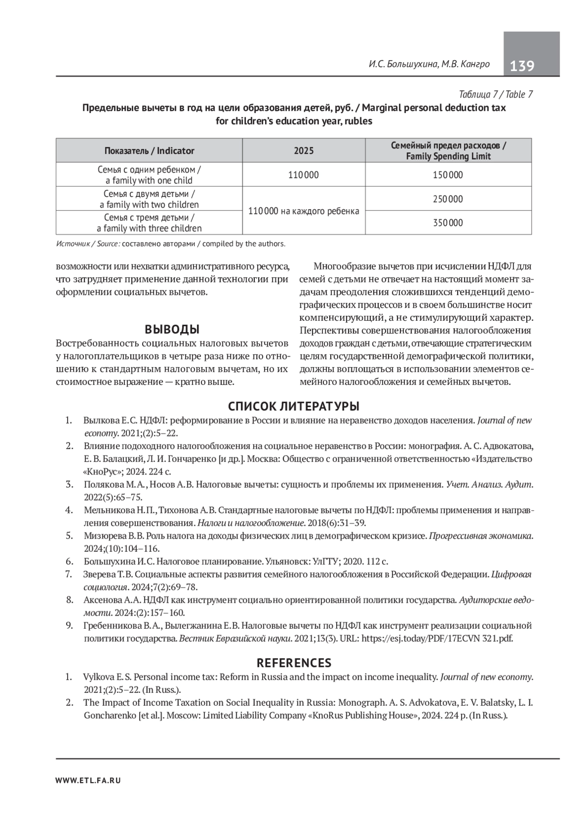 1. Вылкова Е.С. НДФЛ: реформирование в России и влияние на неравенство доходов населения. Journal of new economy. 2021;(2):5-22. EDN: BXQJDV