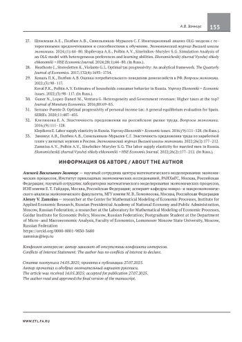 22. Zamnius A. Estimating labor supply elasticities in the Russian Federation using a two earners life cycle model. SSRN. 2024.