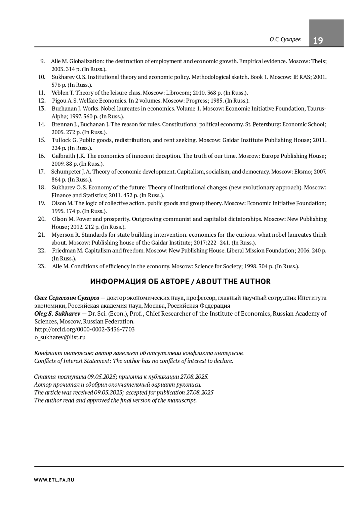 10. Сухарев О. С. Институциональная теория и экономическая политика. Методологический эскиз. Книга 1. М.: ИЭ РАН; 2001. 576 с. EDN: ZLXYYR