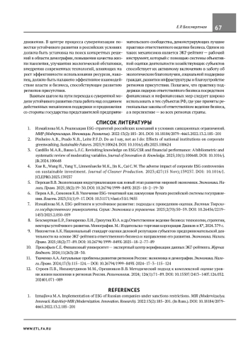 1. Измайлова М. А. Реализация ESG-стратегий российских компаний в условиях санкционных ограничений. МИР (Модернизация. Инновации. Развитие). 2022:13(2):185-201. DOI: 10.18184/2079-4665.2022.13.2.185-201 EDN: BHXXJT