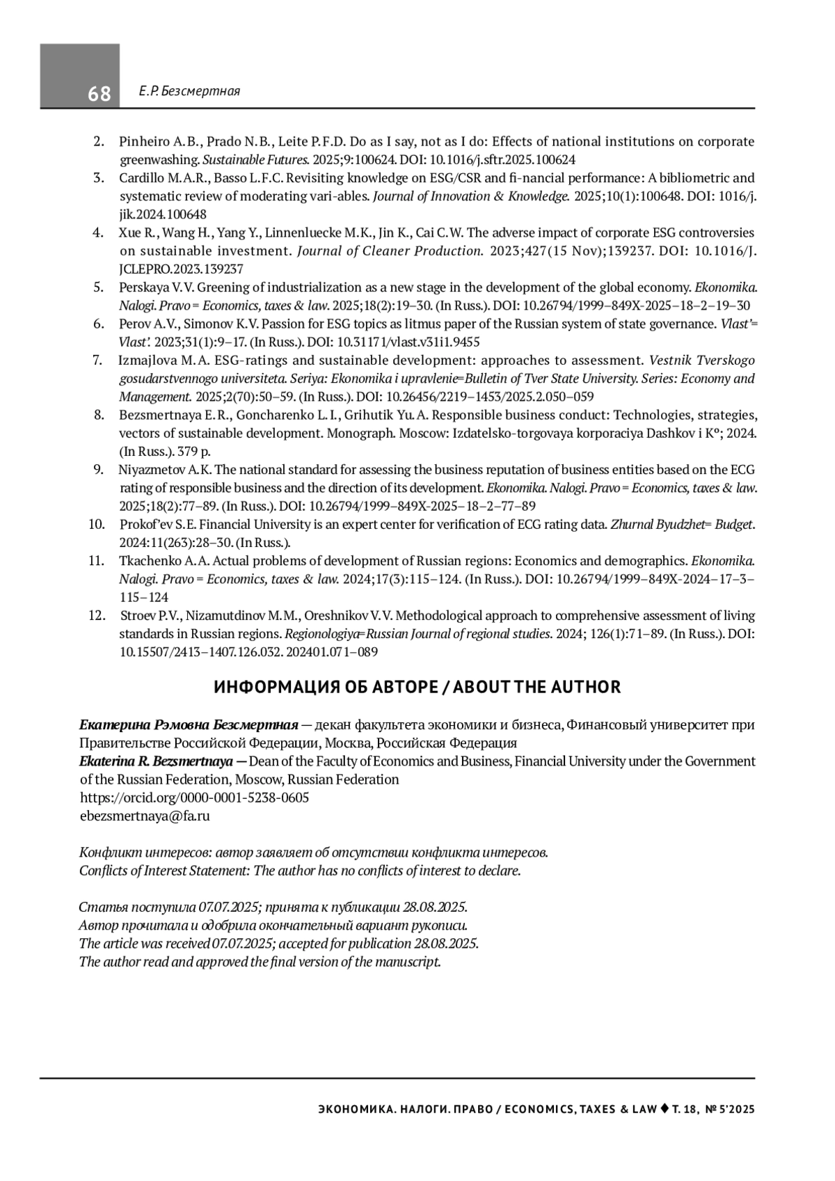 5. Перская В. В. Экологизация индустриализации как новый этап развития мировой экономики. Экономика. Налоги. Право. 2025;18(2):19-30. DOI: 10.26794/1999-849X-025-18-2-19-30 EDN: HRHEWX